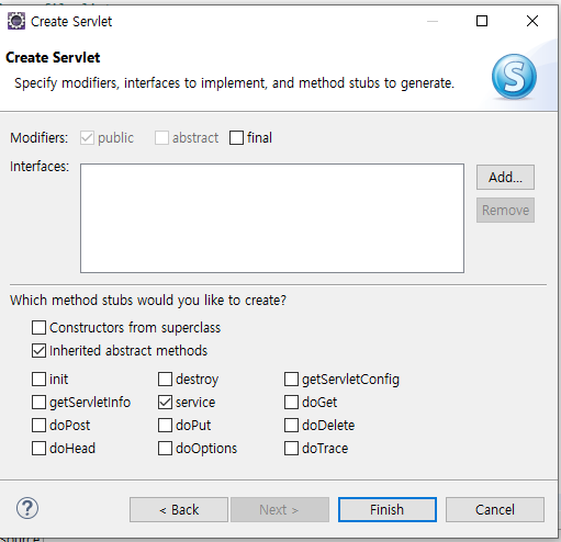 - destroy() : 서블릿 서비스의 종료 및 재시작 그리고 서블릿 코드가 수정이 될 때 호출되는 메서드