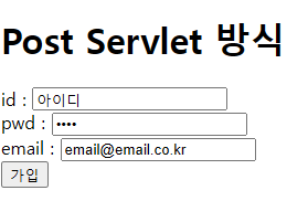 브라우저에서 게시판에 글을 입력하거나 또는 회원가입을 하는 기능으로 다른 페이지에 전송할 때 사용하는 방식이다. get 방식과 다르게 url 상에 노출되지 않고 html 헤더 값이 전송된다.