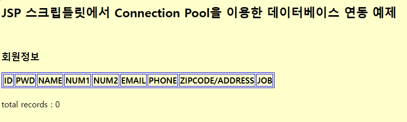 <h2>Bean과 커넥션 풀을 사용한 데이터베이스 연동 예제</h2><br/>