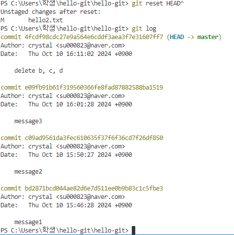 4. git reset HEAD^ 명령어로 최신 커밋 취소