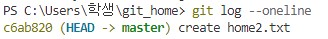 새로운 파일을 생성한 뒤 커밋 로그를 확인해보자.