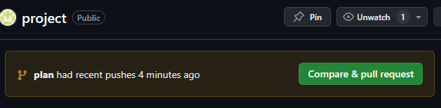 원격 저장소의 plan 브랜치를 확인해 보면 푸시된 작업을 볼 수 있다.