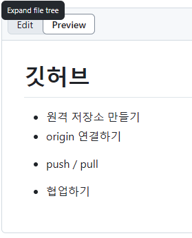 커밋을 완료하면 파일 목록 아래에 README 파일 내용이 표시된다.