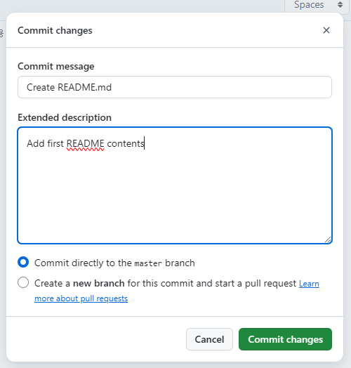 작성을 완료했으면 커밋 메시지와 함께 커밋한다.