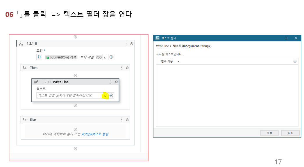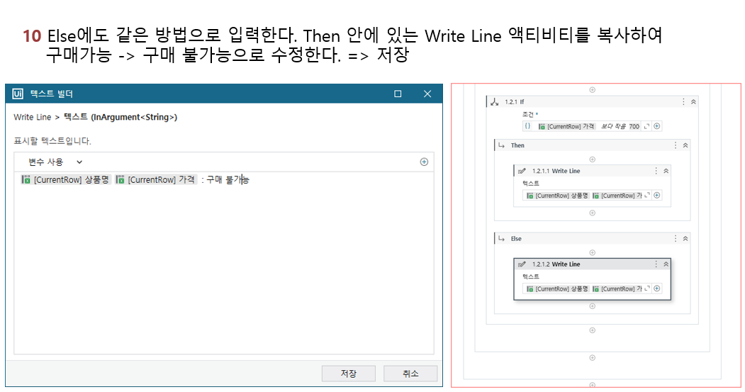 테이블 추출과, IF 액티비티를 이용하여