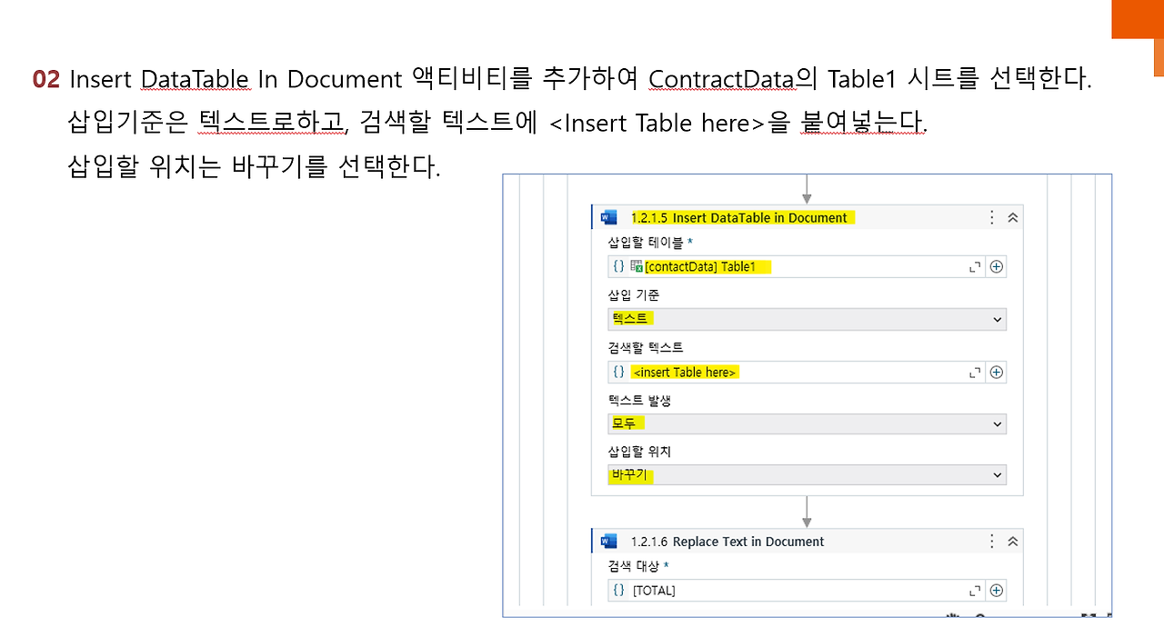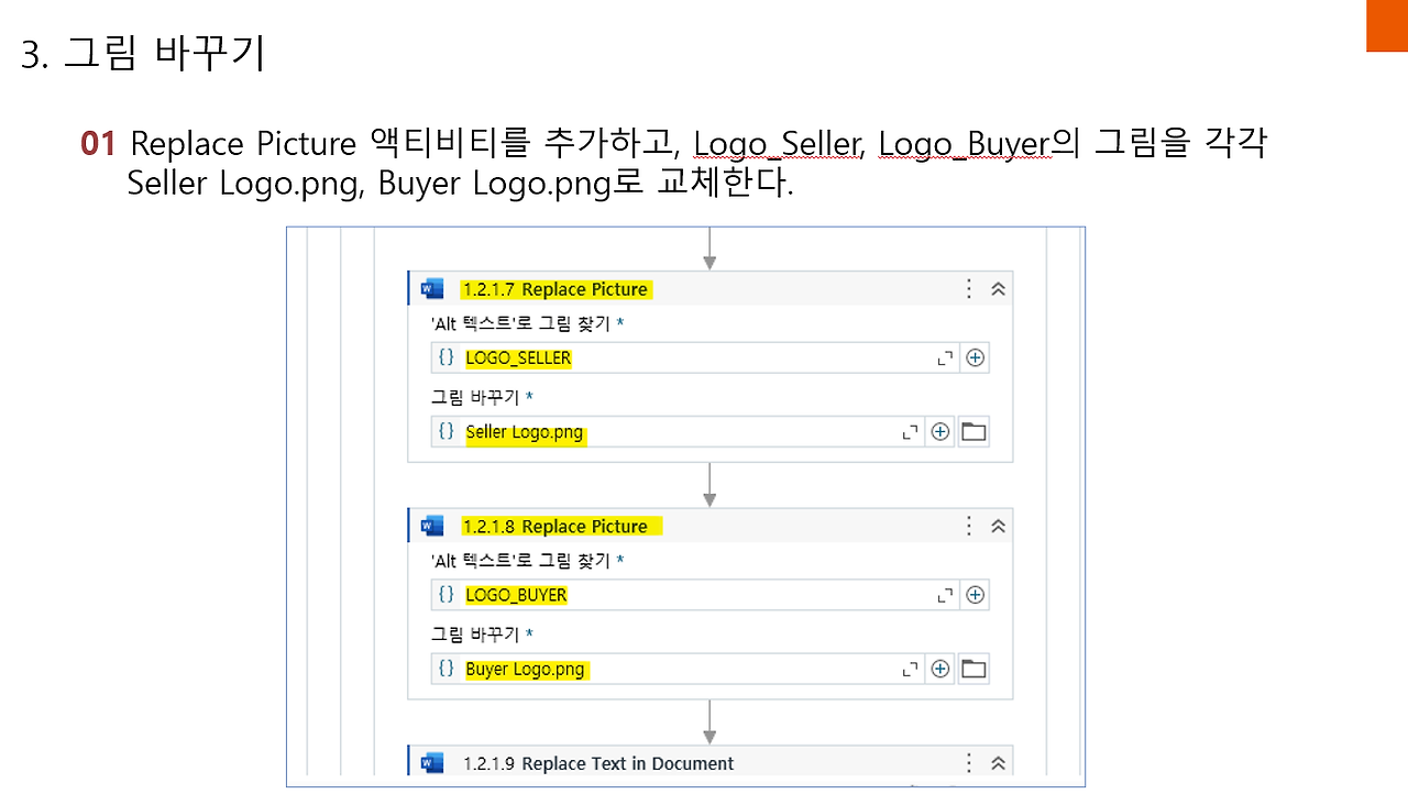 워드파일 자동화 액티비티를 이용하여, 워드파일의 그림, 텍스트 교체,