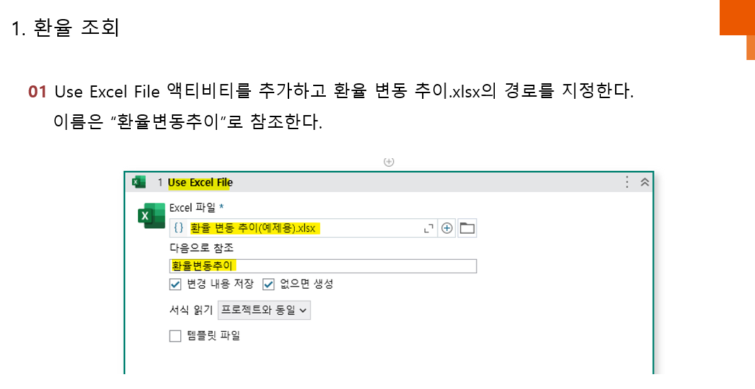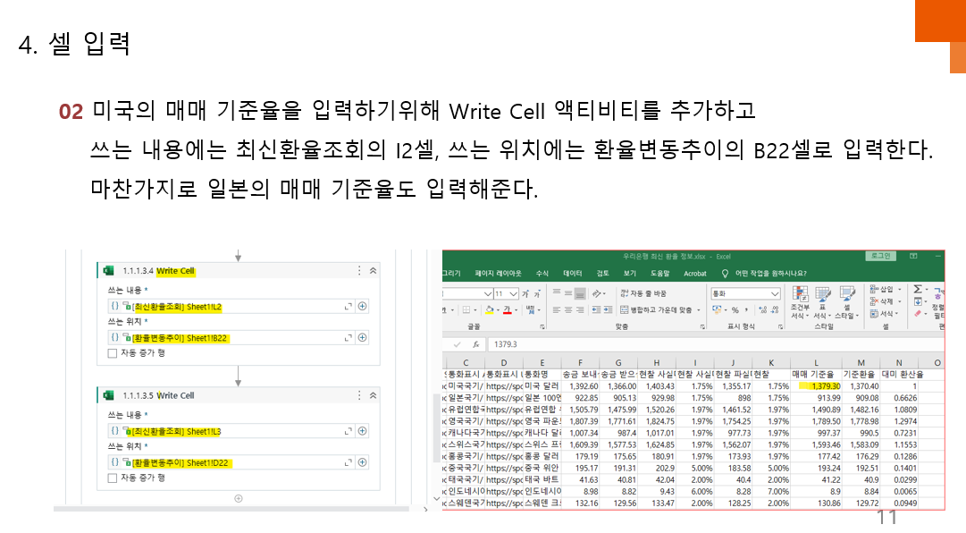 일별 환율을 조회해서 데이터를 추출하고, 지정된 셀에 값에 넣을 수 있다.