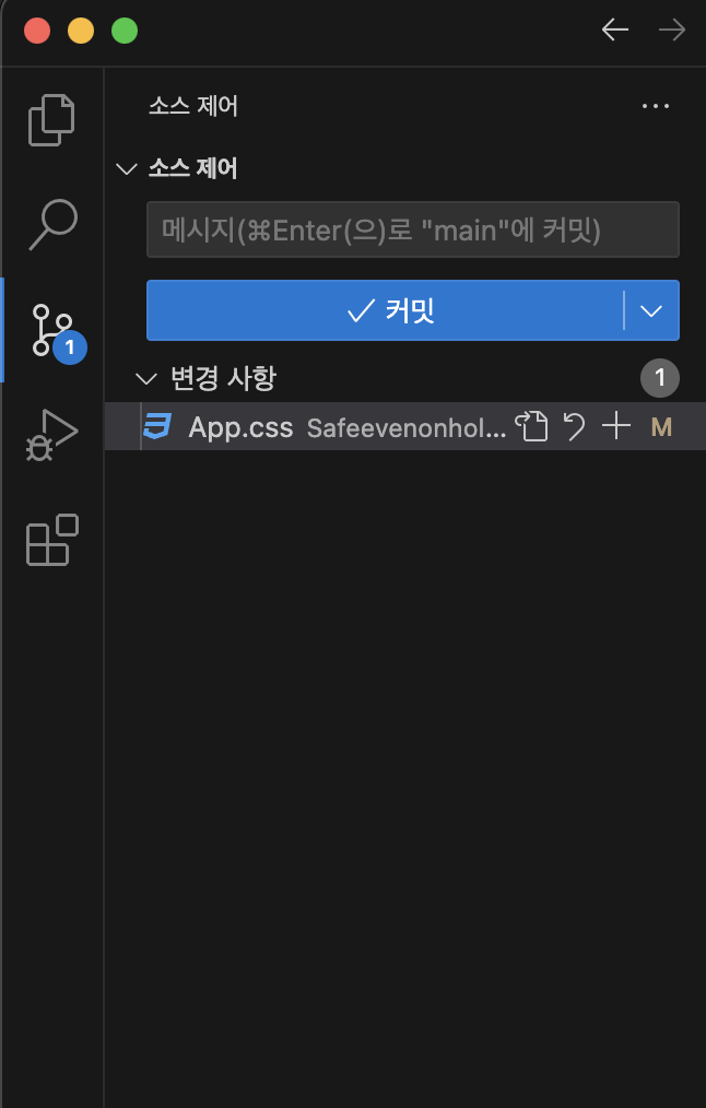 파일이 변경되면 왼쪽 사이드 [커밋] 메뉴에 변경 파일이 표시됩니다.
