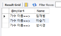 SET @myVar4 = '가수 이름==> ';